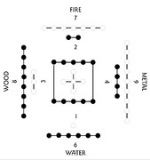 Cobie Posted July 21, 2023 (edited) The numbers 1 to 5 are associated with the ‘Chinese 5-elements’ (五行): 水 (huo3) fire <~> the number 2. 火 (shui3) water <~> 1. 土 (tu3) earth/soil <~> 5. 木 (mu4) tree/wooden <~> 3. 金 (jin1) gold/metal <~> 4. Four of the ‘5-elements’ (五行) were shown at the four sides of the square. And the fifth element ( 土 earth, soil) is in the middle. Higher numbers take the position of the number minus multiples of 5: 1 and 6 are water; 2 and 7 are fire, etc ~~~ A modern one in a circle: ~~~ 五行: 五 wu3 - the number ‘5’; 行 xing2 - something like ‘movements’. Edited July 22, 2023 by Cobie Share this post Link to post Share on other sites