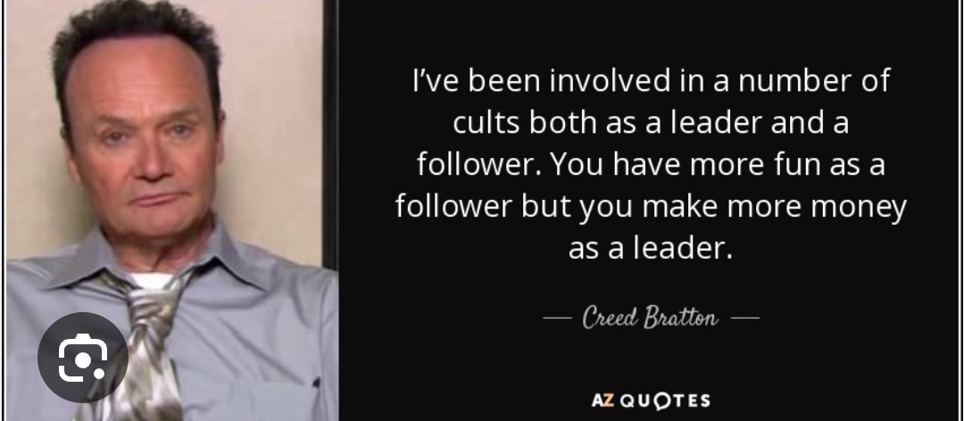 GreatAutumn Posted December 4, 2023 1 minute ago, senseless virtue said: Cults always have more sinister stuff going on than some crazy monetization scheme(s Oh, that's just how they start, they degenerate as time passes and as the leader stars to believe his own bullshit. But to each its own I guess, if you guys want to pay that much money to get superpowers, than do it, I'm sure its all real, keep us updated and be sure to post videos of that scientific study that you guys intend to do down the line. Or even better, post it on tik-tok 1 1 Share this post Link to post Share on other sites